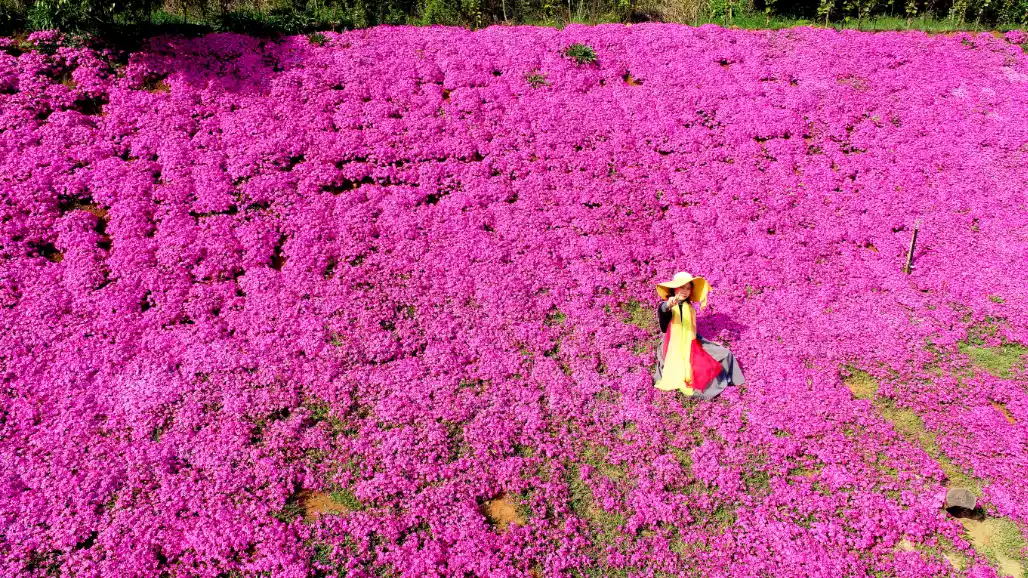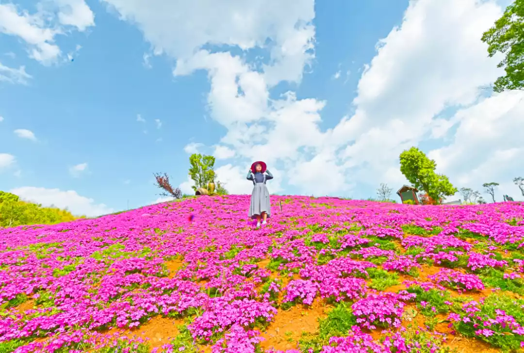 At an altitude of 550 meters, lies Qixin Valley, a secret valley closest to the sea in East China. From April to May, vast expanses of moss pink flowers cascade down the thousand-meter-long slopes, unbridled and unrestrained in their dazzling beauty, a breathtaking sight.
