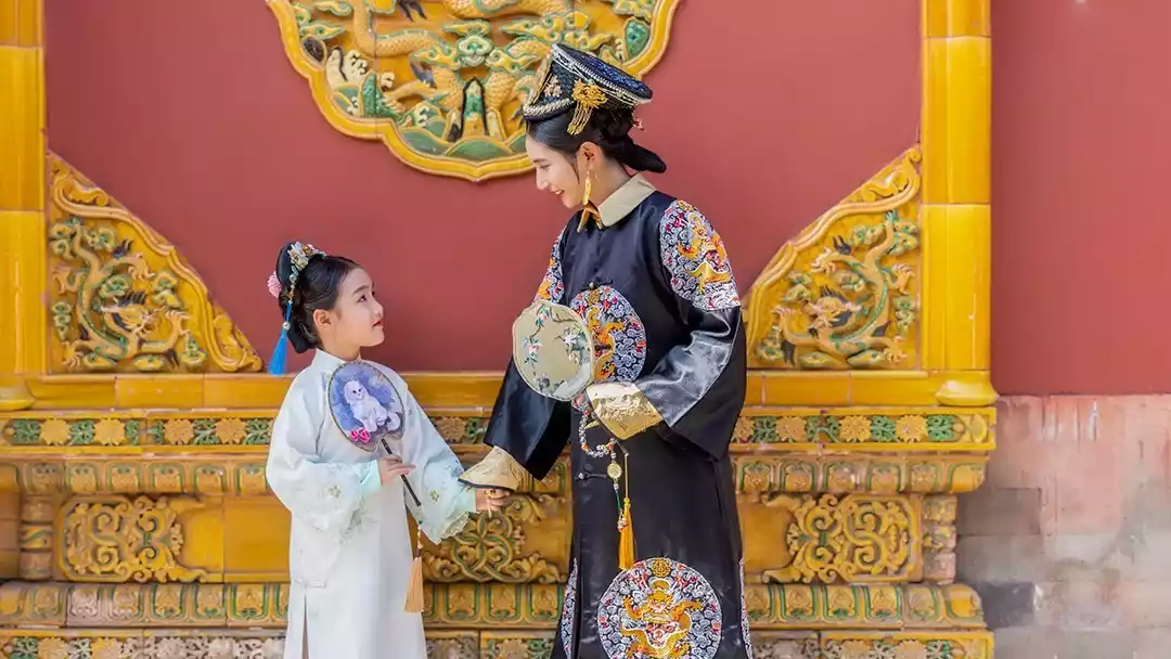 You must wear ancient costumes and take photos in the Forbidden City. You can take photos alone or with a doll.