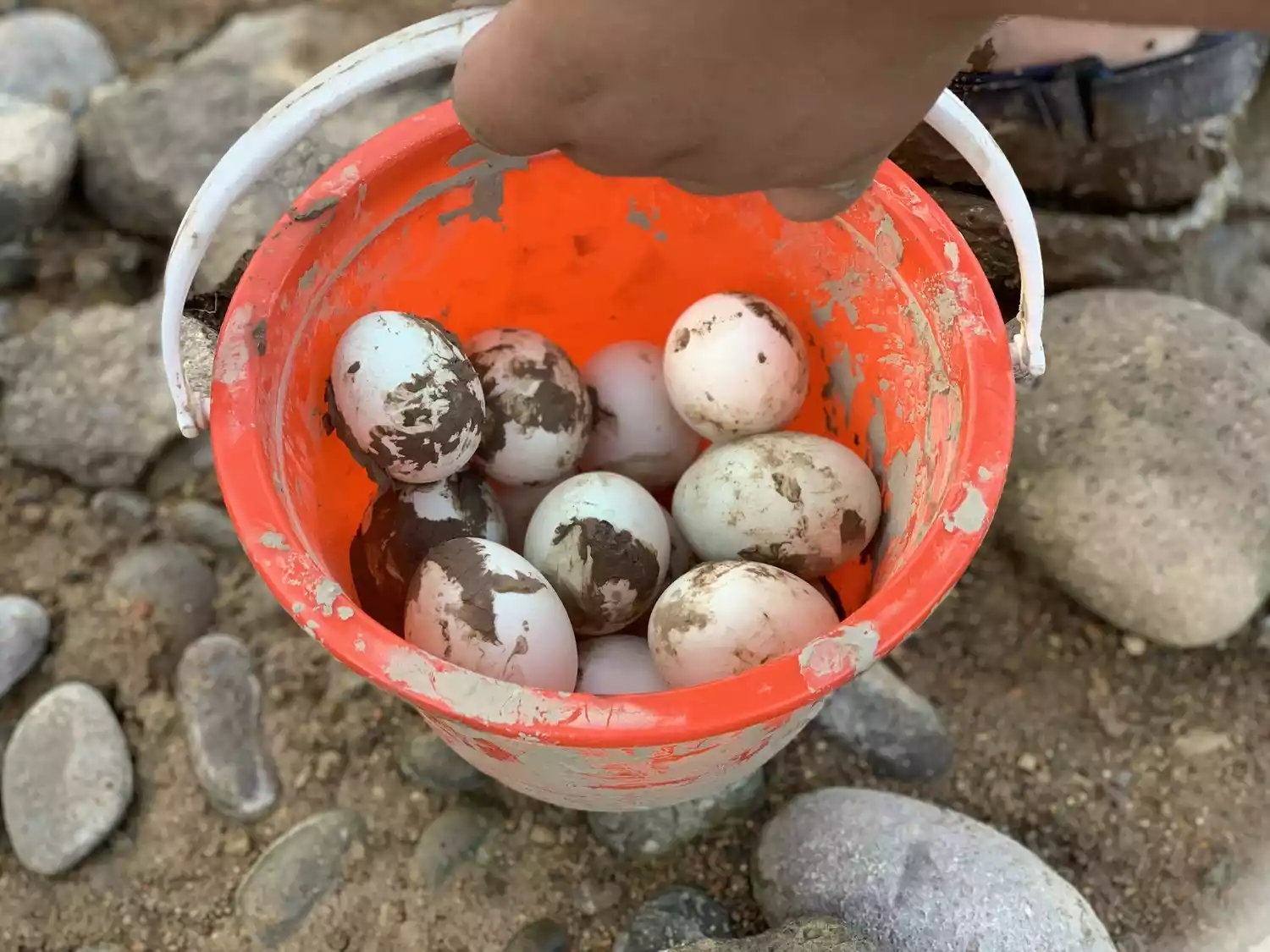 Thousands of sea ducks graze on the harmless creatures of the mudflats and lay healthy, nutritious eggs. The keepers leave a few eggs every day, and if you're skilled enough, you can gather a bucket full in half an hour! (Just a heads-up: there's a surprise if you venture further afield. 🤪)