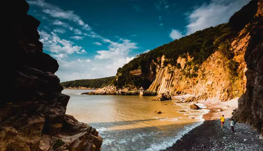 I'd like to recommend a place, a sparsely populated, pristine island nestled in the East China Sea. Its volcanic coastline stretches for kilometers, and its undulating sea-level rock formations stand tall and proud like warriors, protecting the peaceful fishing village beyond.