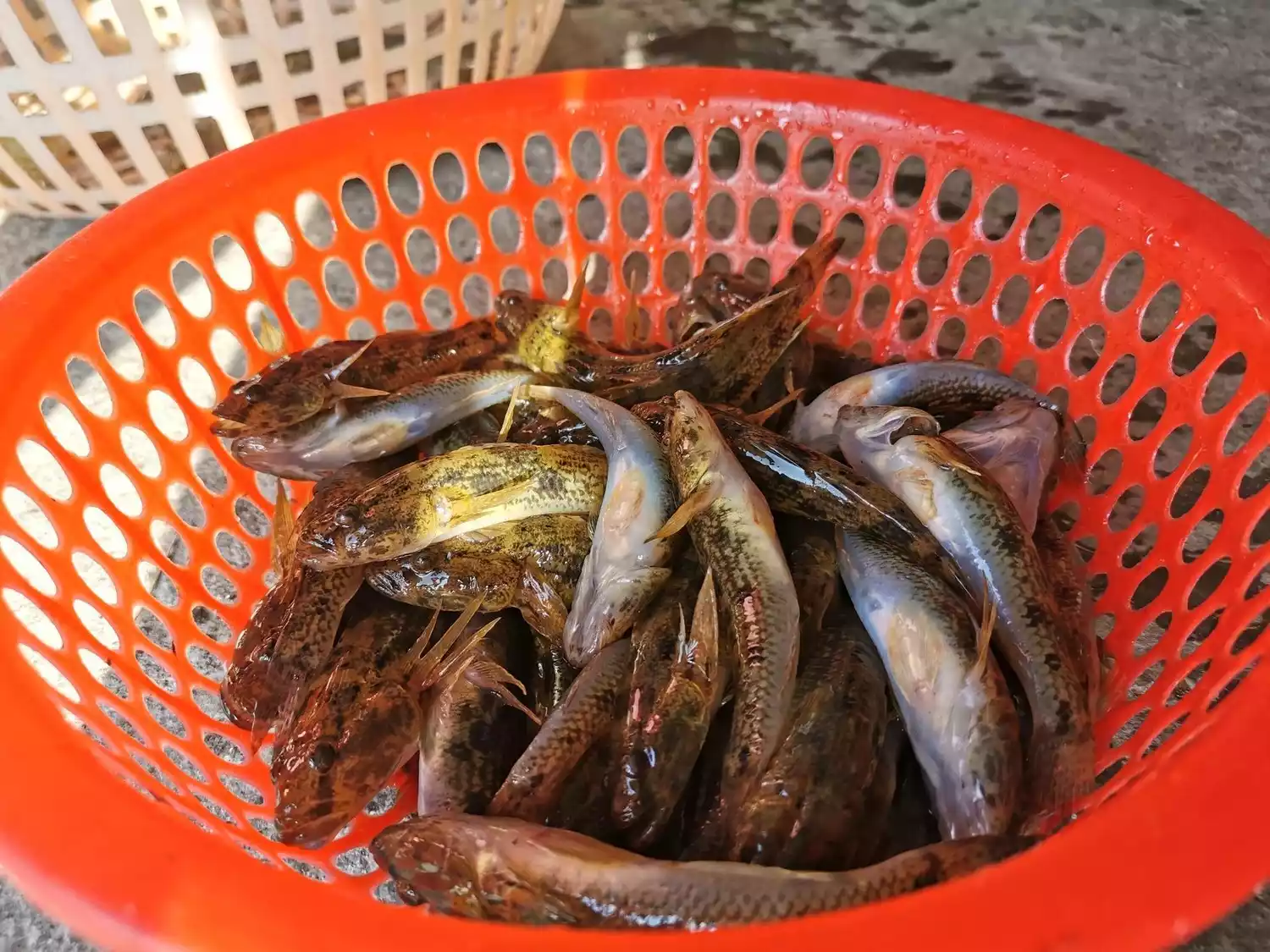Although it is a fishing ban period, you can still catch a basin full of small shrimps, fish and crabs, and they will be your lunch the next day!