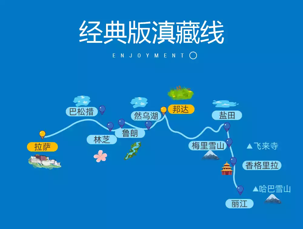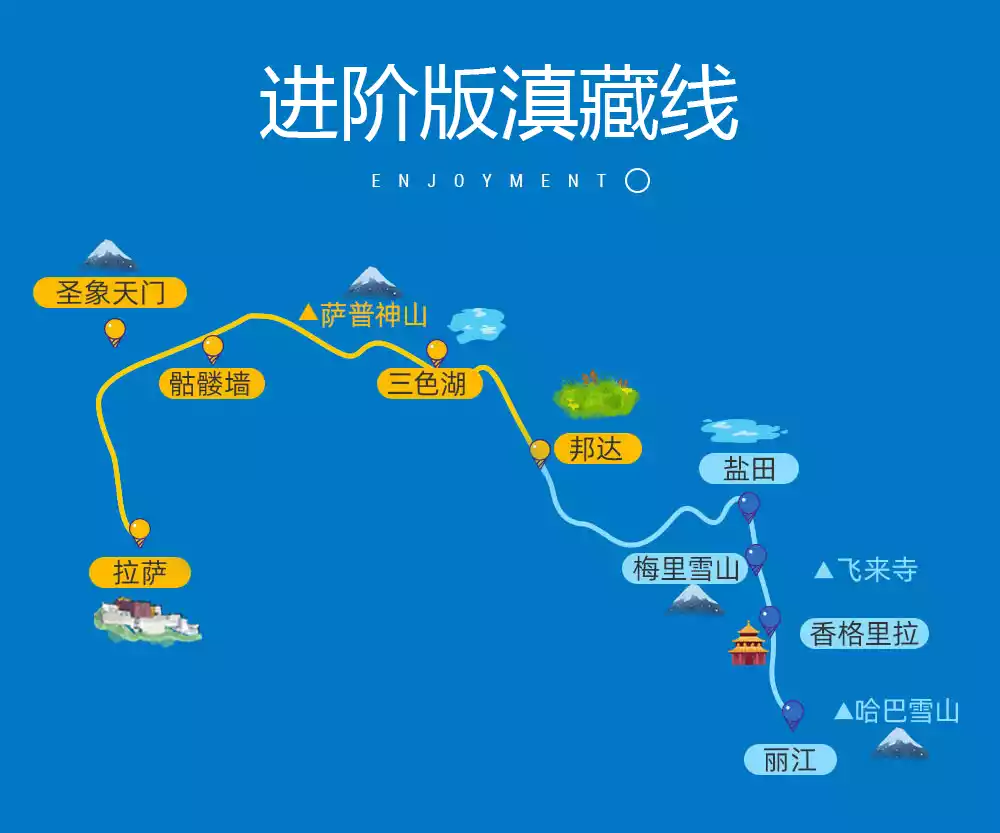 The altitude rises slowly from low to high throughout the entire route, covering all the classic check-in destinations and giving tourists more room to adapt.