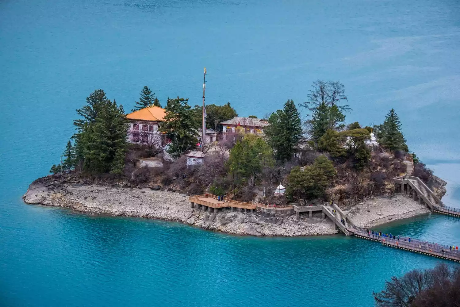 About 100 meters from the shore of Basongcuo lies a small island called Zaxi Island. Legend has it that it's a "hollow island," meaning it's not connected to the lakebed but floats on the surface. When you visit the island, try stamping your feet to see if you feel a hollow sensation.