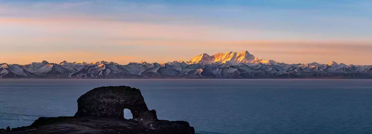 To the south lies the Nyainqentanglha Mountains, which are covered with snow all year round, and to the north lies the plateau hills. It is like a huge mirror inlaid on the northern Tibetan Plateau. The deep blue water of the lake adds a bit of mystery.