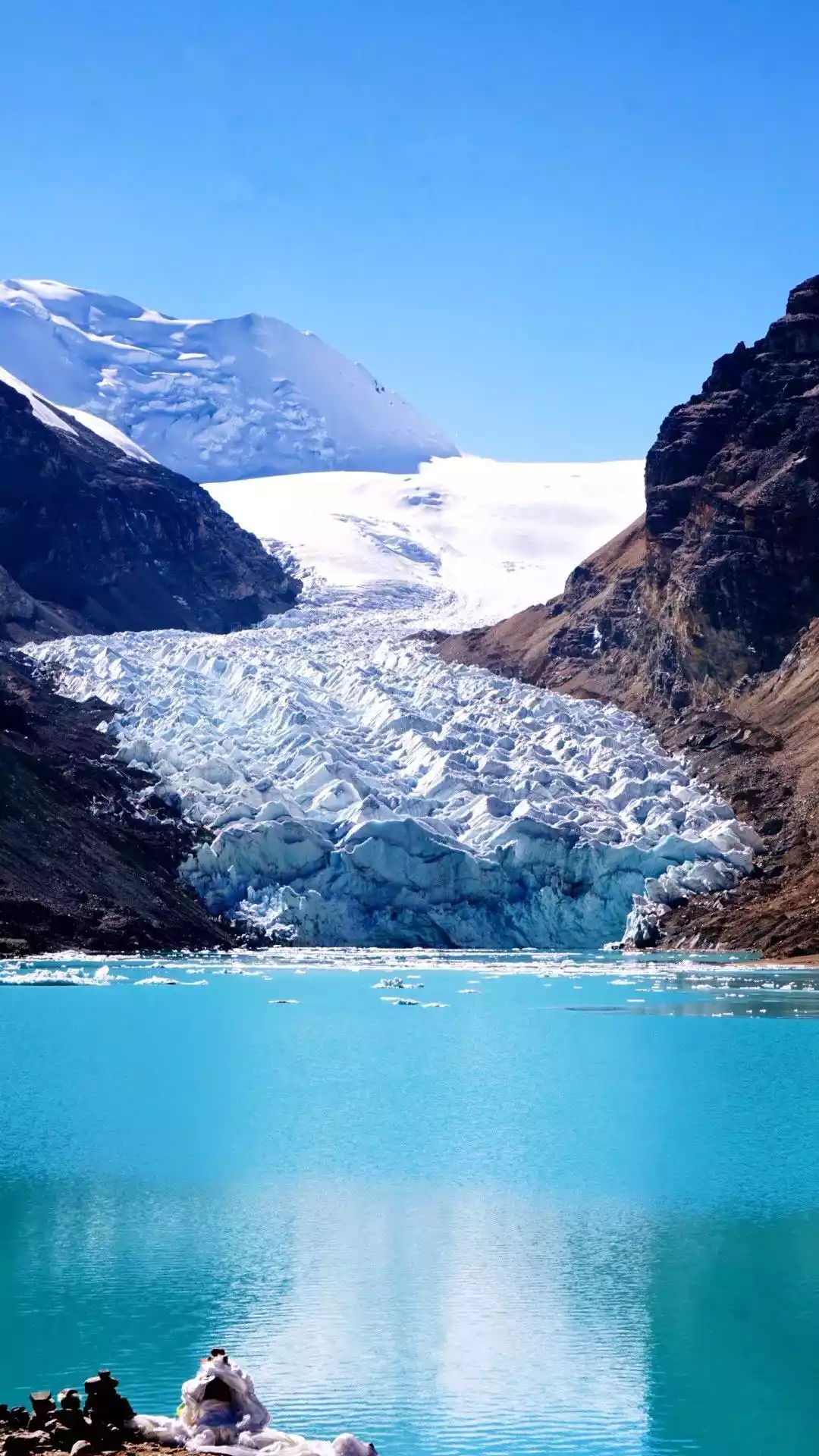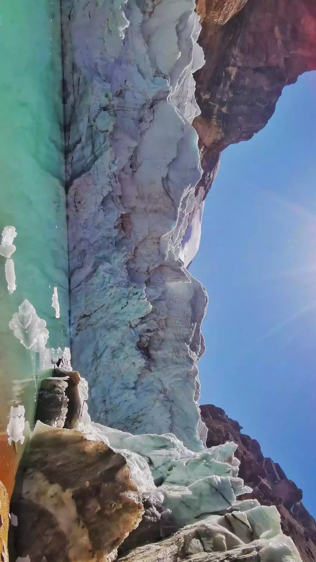 Follow us along the Himalayas to the Qudennima Glacier, where you will see large chunks of unmelted ice floating on the turquoise lake water, and a huge natural crystal glacier behind it. You can clearly see the texture carved by time on the fracture surface of the glacier tongue.