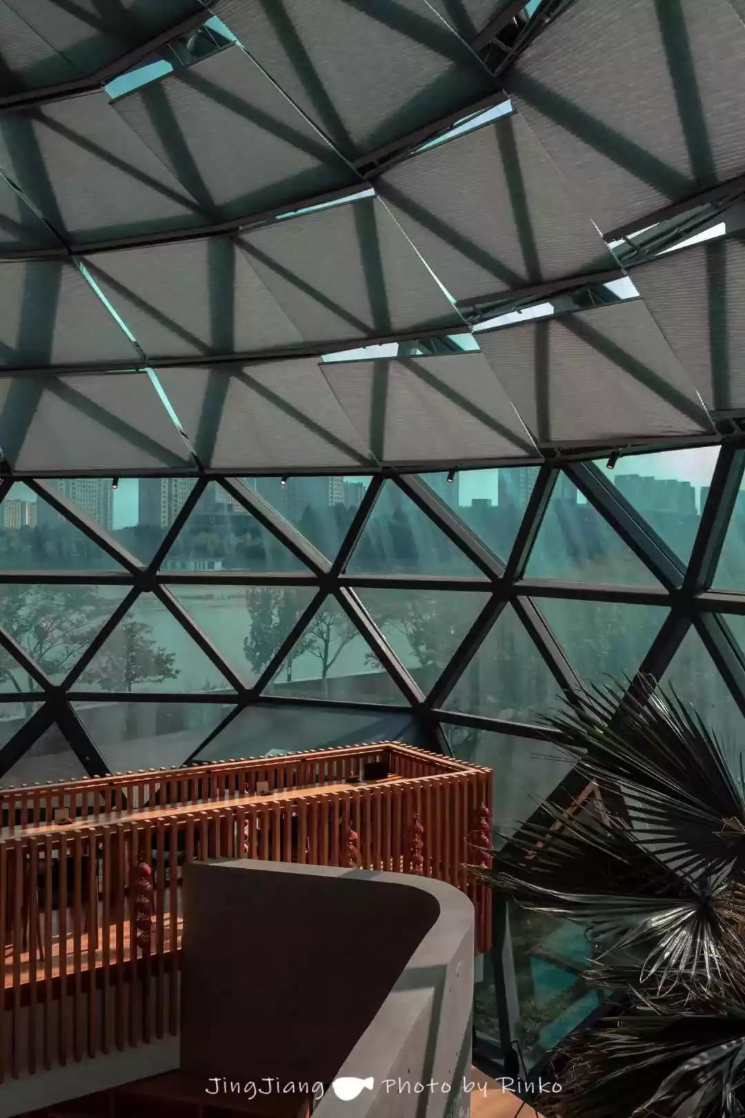 In Mazhou Park, there is a library with a strong sense of design. Its oval appearance is like a landed flying saucer, and the geometric glass exterior wall is full of technology.