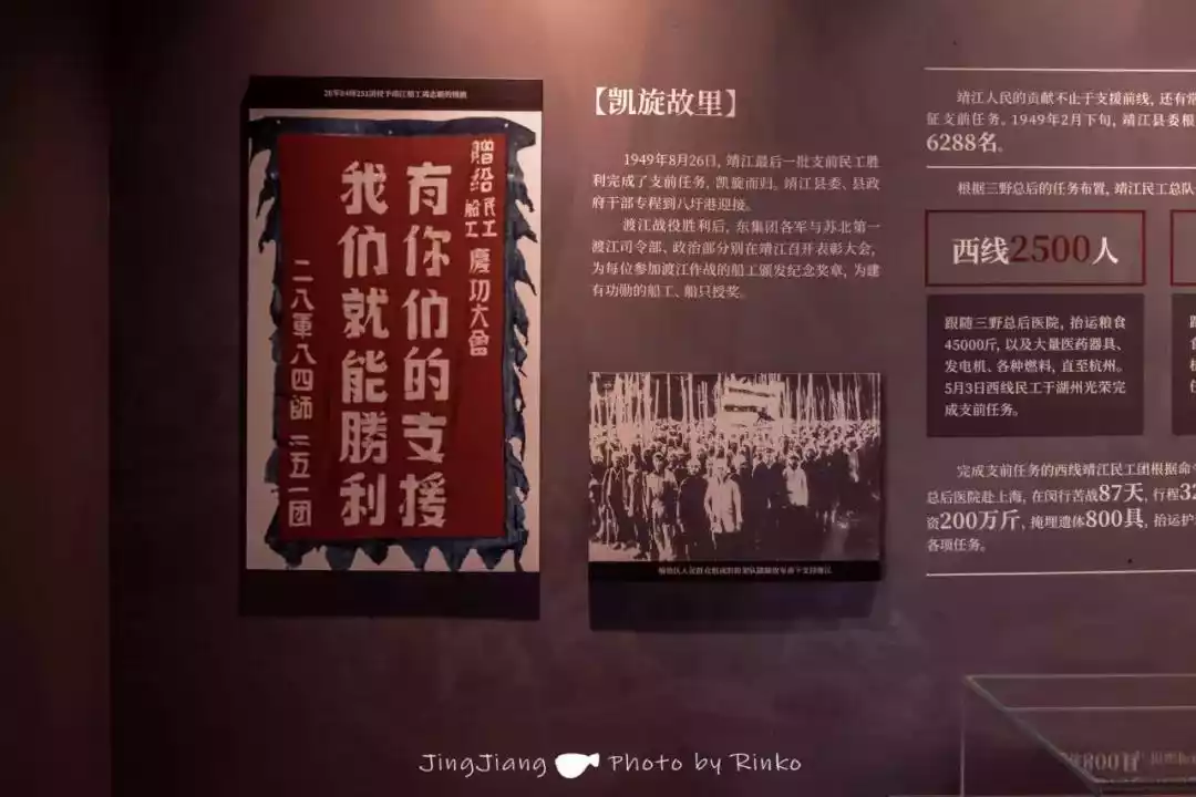 Walking into the Memorial Hall of the First Sail on the Eastern Front, the sense of history of that era comes over you. The old photos show the great contribution made by the people of Jingjiang to the Battle of Crossing the Yangtze River, the moving power of cooperation between the military and civilians, and the touching friendship of unity and cooperation between soldiers and civilians, all of which are moving.