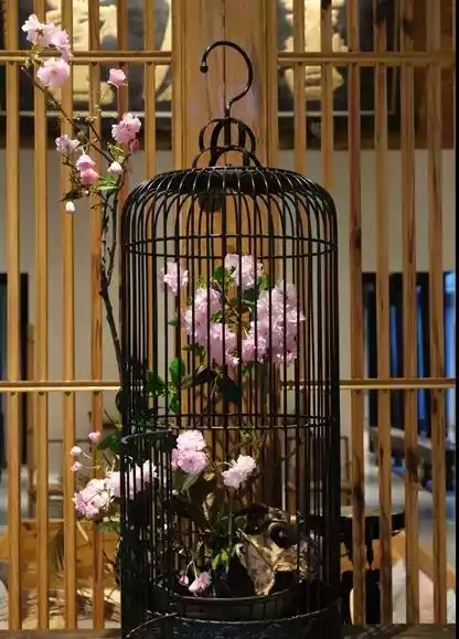 As you enter the door, there is a hollow wooden partition several people high, which makes you feel that there is a big world inside. On the desk in front of the partition is a huge birdcage. As the seasons change, flowers are arranged in it using local materials. This flower arrangement is not just an embellishment, it can often light up the vitality of the entire space. It is so magical.
