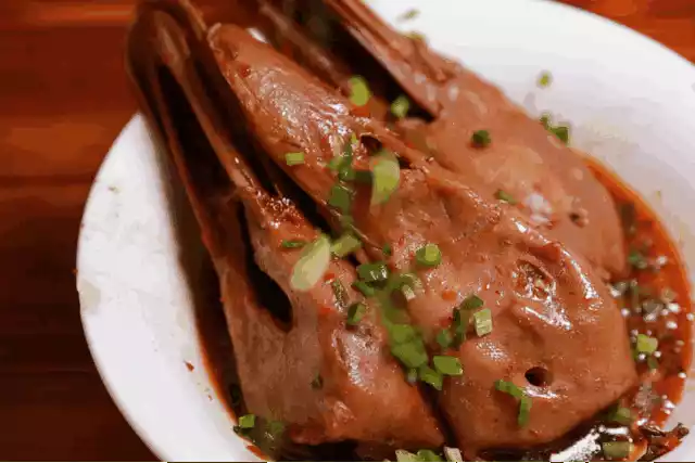 一句话,它颠覆了很多人对鸭头、兔头的看法,一口咬下,肉质酥烂,往嘴里一过,肉和骨头便能瞬间分离,伴随着浓郁的酱汁,吃起来,后劲立马上头,又辣又鲜,那叫一个爽。