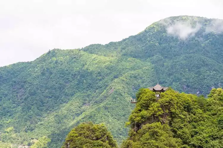 Tianzhu Peak is like a bamboo shoot with steep cliffs rising from the ground. Qianzhang Rock is opposite Tianzhu Peak. There is little vegetation and the rock walls are flat. The altitude is about 1,150 meters. You can see the spectacular scenery here from the Guanyun Pavilion.