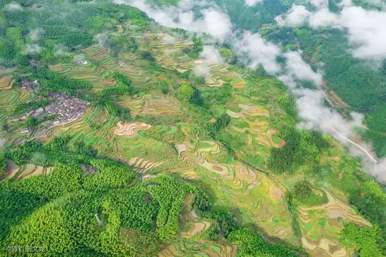 The entire scenic area, forests, terraced fields, sea of clouds, and villages are shrouded in clouds, like a paradise on earth.