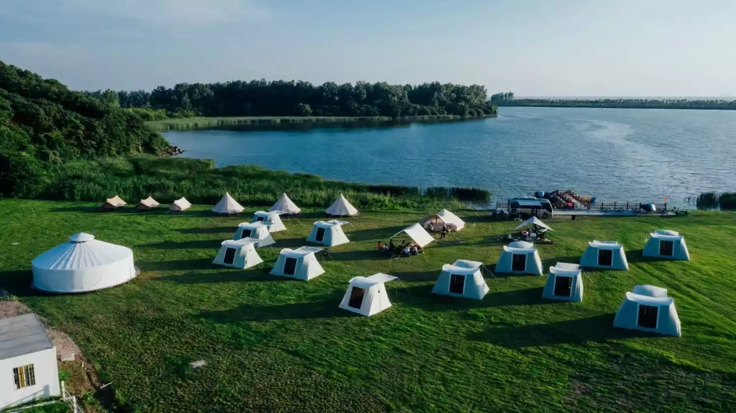 Just behind the tent is a pristine lake in the campground. It's quite large and perfect for rowing or kayaking. It's unacceptable not to play in the water in the summer, and water sports are also a good option in the hot summer.