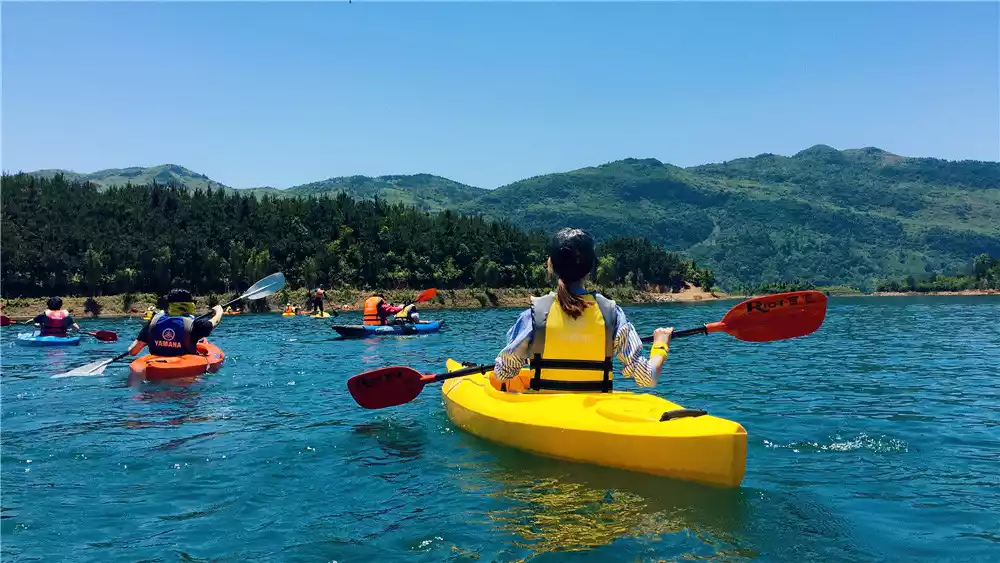 The lake is sometimes windy, so children are not recommended to go in the water. Children over 11 years old must be accompanied by an adult if they want to participate. Two people can ride in one kayak.