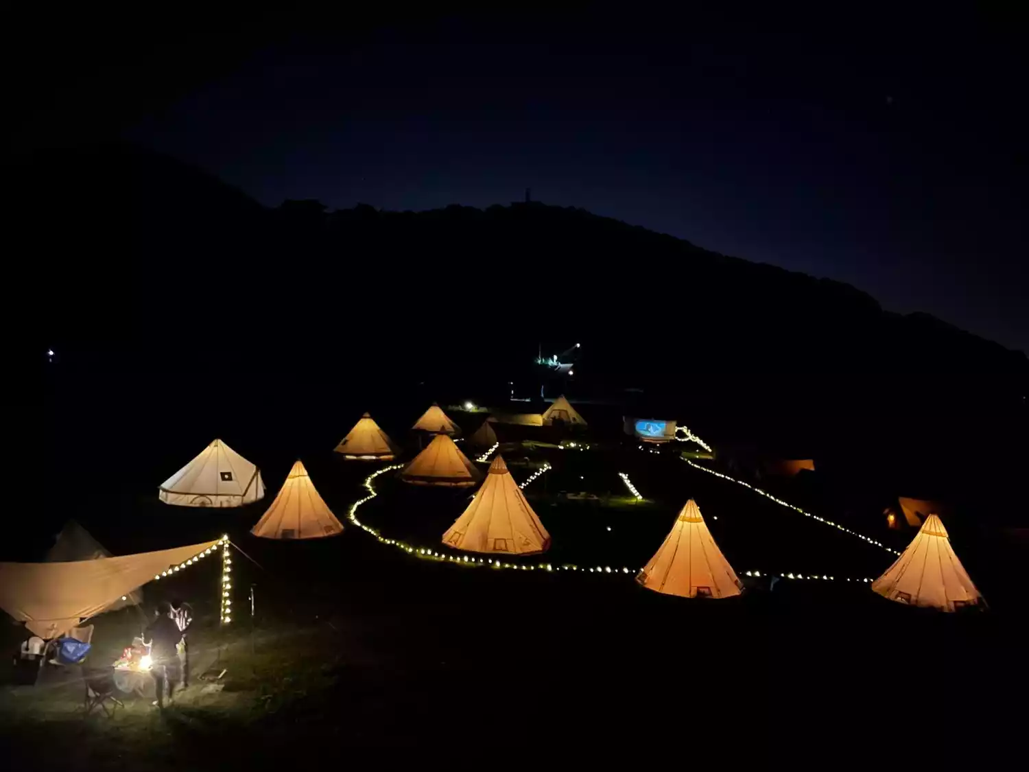 There is an extra-large air-conditioned yurt room with a canopy, tables and chairs, and various photo props. If you want to have a cup of coffee at any time, that's also possible. Outdoor gas tanks and small stoves are available at any time, but you can't make a fire directly on the lawn.