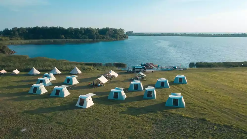 The campsite is fully equipped with facilities, and all tents are set up in advance. There are many choices of tents in the accommodation area, equipped with air mattresses, pillows, blankets, camp lights, etc. You can just move in with just your luggage. It is recommended to bring your own sleeping bag and small quilt.