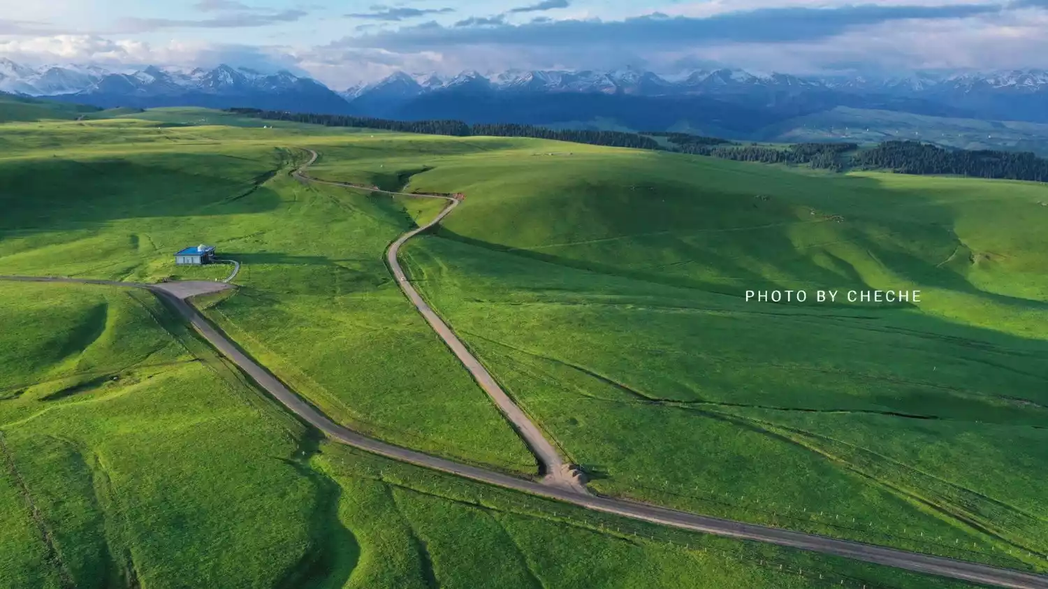 The Kalajun grassland is even more charming in summer, with countless blooming flowers dotted on the green meadows, herds of cattle and sheep intertwined with the snow-capped mountains in the distance, creating a healing and romantic atmosphere.