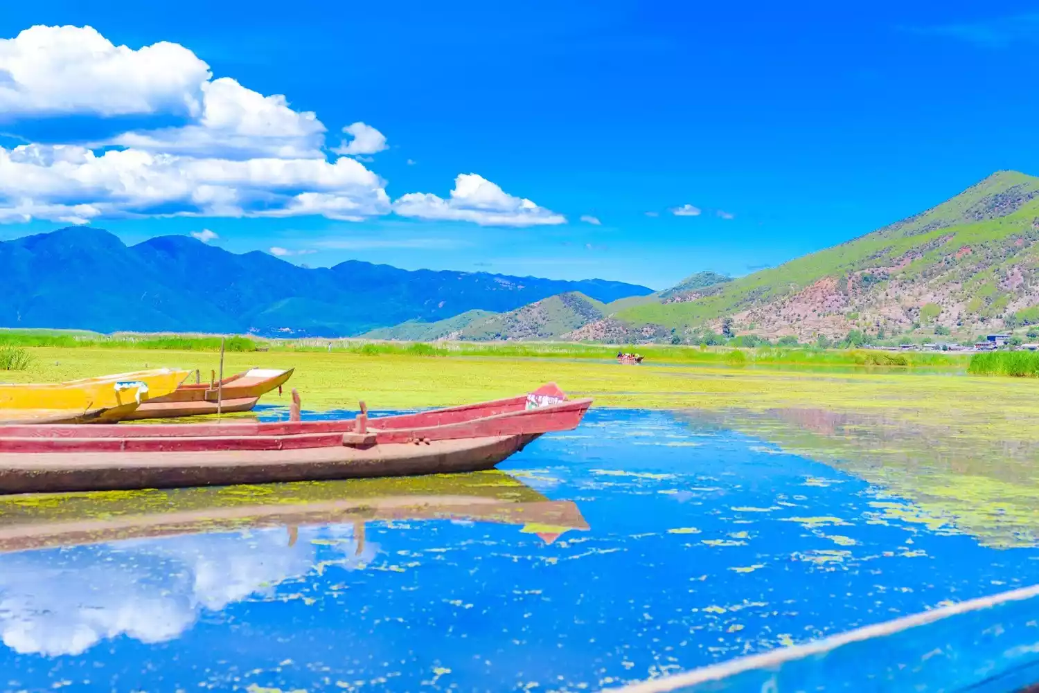 But the most beautiful thing about Lugu Lake is its water: tranquil and azure, dreamy and ethereal, like a fairyland. Take a ride on Lugu Lake's unique pig trough boat, slowly wandering the lake, and immerse yourself in the beautiful scenery bestowed by nature.