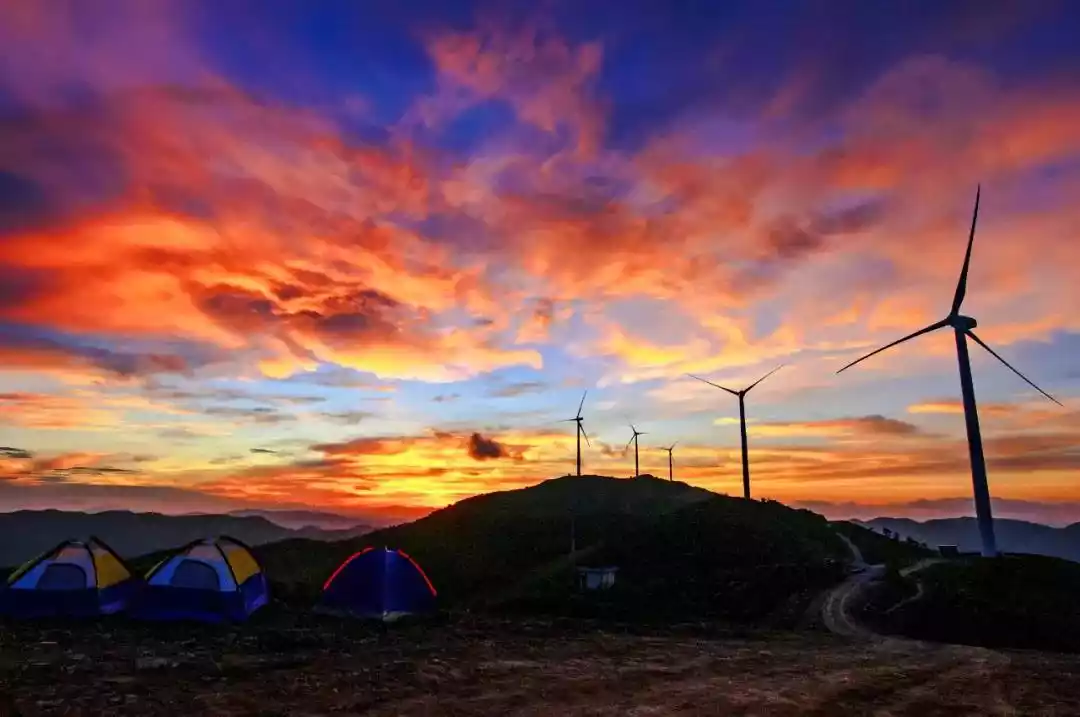 Some say the mountain was originally called "Baiyan Mountain," meaning it was so high and steep that anyone who reached the top would roll their eyes from exhaustion. Because the name wasn't elegant, it was renamed "Baiyan Mountain" to reflect its pronunciation. From here, you can not only admire the majestic mountains, but also see windmills turning in the wind.