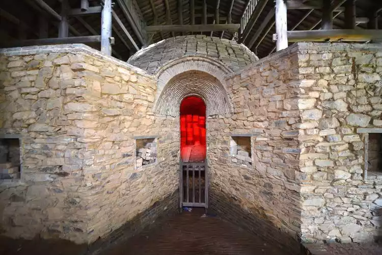 Below the round pavilion is Dragon Kiln No. 2, a smaller kiln, yet one of the oldest porcelain kilns discovered in Yaoli. Kiln No. 2, dating from the Southern Song Dynasty until the mid-Ming Dynasty, is a sloped dragon kiln from the Southern Song Dynasty. With a total length of 11 meters and a 20-degree slope, it represents a small dragon kiln during the transition from dragon kilns to horseshoe kilns.