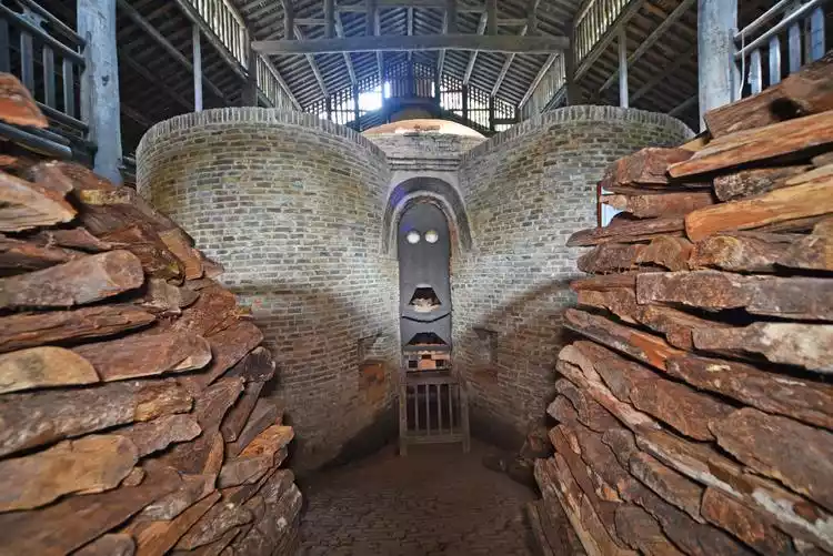 Opposite the Zhen Kiln is the Lion Kiln, and above it stands the Ming Dynasty Gourd Kiln. It's said that the famous Yuan Dynasty blue-and-white Guiguzi Descending the Mountain jar and the Ming Dynasty Chenghua Doucai Chicken Cup were both produced here. These ancient kilns are refired several times each year, a continuation of the kiln's fire and a legacy of its spirit.