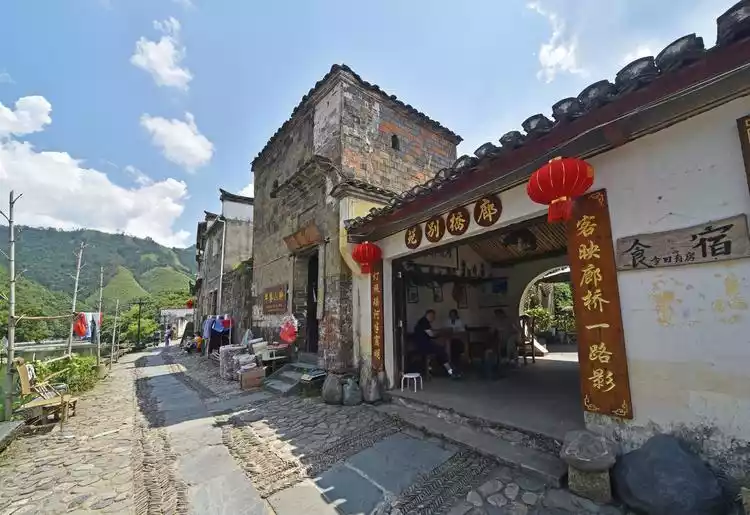 The ancient dwellings in Yaoli all face the river, with nearly every home nestled against the mountain, facing the water, and protected by the mountain. The architecture is richly influenced by the local styles of northeastern Jiangxi and southern Anhui. Roofs with upturned eaves and angles, tall gables, whitewashed walls and black tiles, courtyards with water flowing into the hall, bluestone streets, and brick, stone, and woodcarving decorations create a rich and exquisite atmosphere.