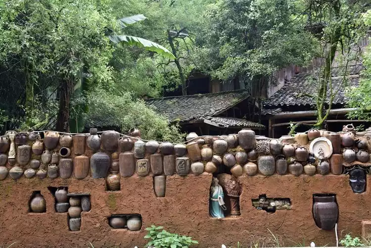 Walking along the village streets, the courtyard walls, built from discarded ceramics and debris, are truly unique, drawing passersby to take photos. Nestled between mountains and rivers, with streams and waterfalls, exquisite houses dotted throughout the village, creating a tranquil and leisurely atmosphere. Living here creates a sense of detachment, like a paradise.