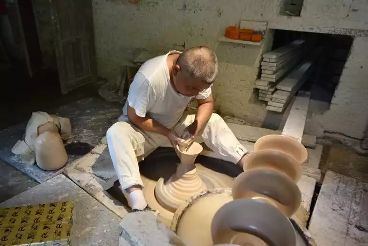 Passing by the statue of Tong Bin, the "Fenghuo Immortal Master", we stopped at a handmade porcelain workshop.