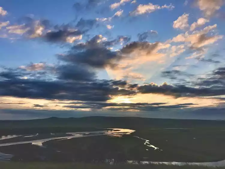 I got up at 4:30 in the morning and jogged to the sunrise viewing point. I saw the sun struggling to break through the dark clouds, showing us the beautiful scenery of the grassland in the early morning with its light and shadow art.