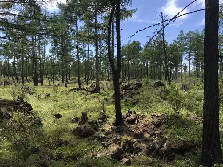 Arxan is a natural ecological museum. Due to past volcanic eruptions, Arxan offers a unique opportunity to observe the evolution of native plants: volcanic lava cools into bare rock, lichen spores are spread by wind, lichens grow on the rocks, the lichens mix with rock debris to form soil, mosses form, ferns settle, small shrubs emerge, grasses form, trees grow, and finally a forest is formed.