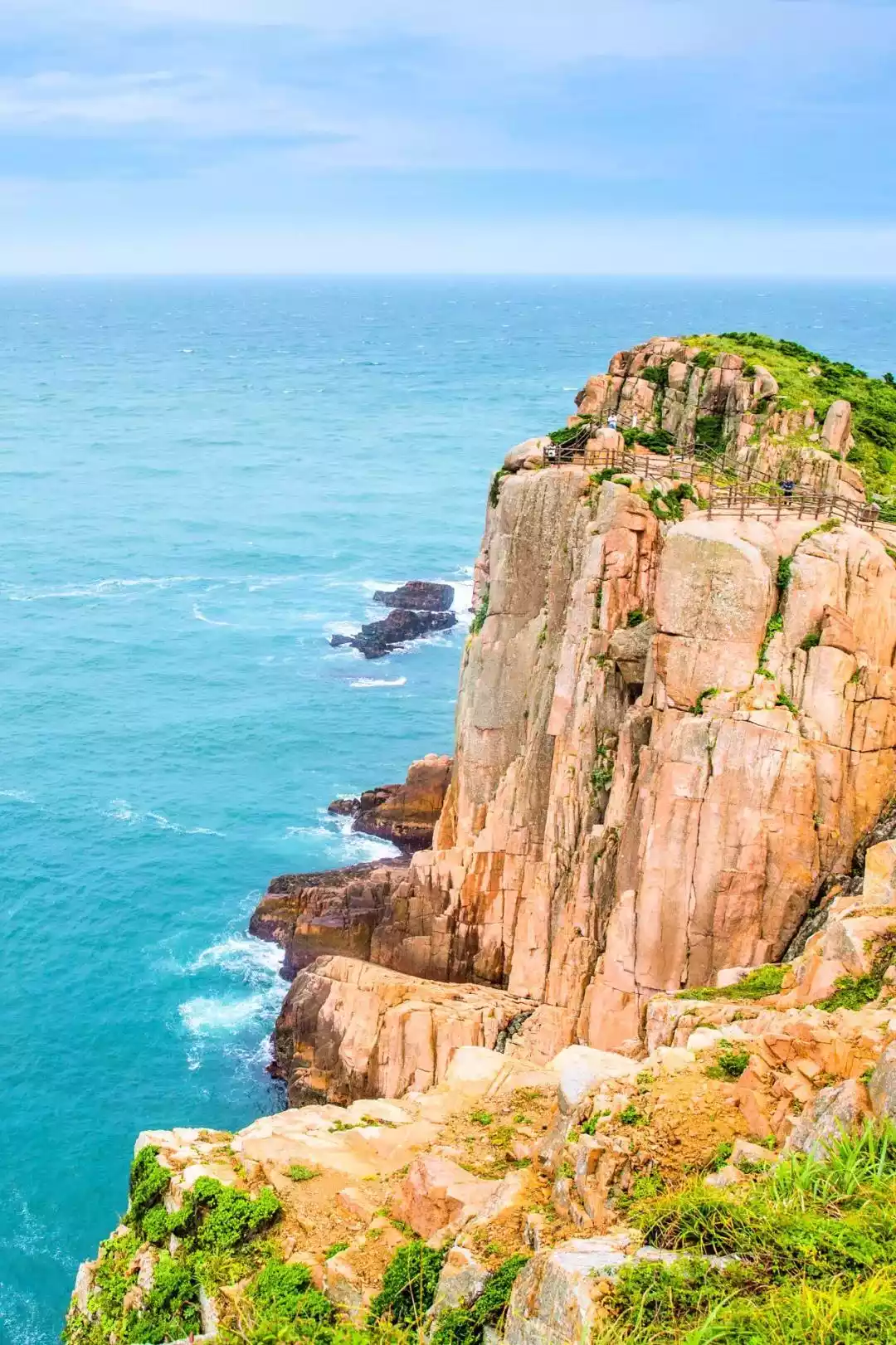 Located on the easternmost side of Shengshan Island, the Dongya Cliff stretches 3,000 meters, jutting 90 degrees into the sea. Its face is as sharp as a sword, slicing through the sky. At its highest point, the drop reaches 70 meters, making it difficult for even nimble birds to traverse it.