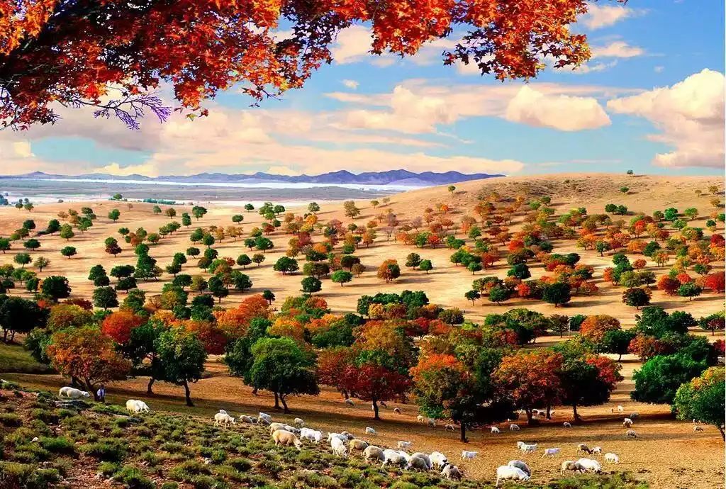 Every September, the autumn wind from the northern desert roars across the wilderness of Inner Mongolia, arriving at the Hulunbuir grasslands. This lush land, as if God had overturned a palette, becomes extraordinarily colorful and enchanting.