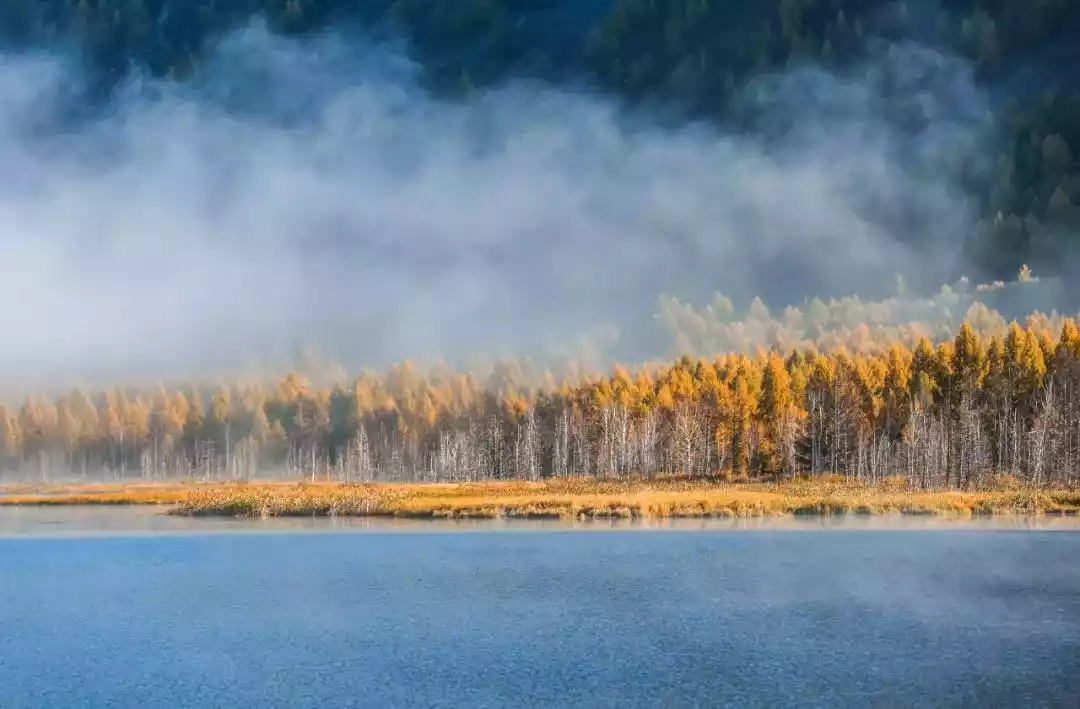 When the first ray of sunlight shone on Arshan in the early morning, we came to Wusu Langzi Lake in the morning light. The morning mist here is a favorite of photographers.