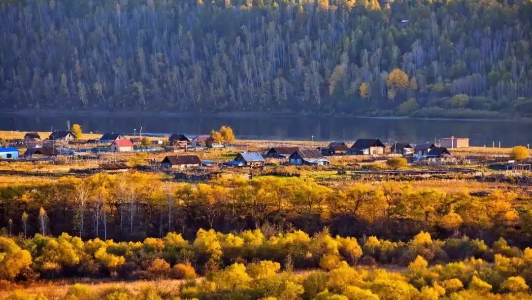 Surrounded by mountains on three sides and facing water on one side, there are golden grass, trees, small wooden houses, wooden fences in front of the houses, curling smoke from the roofs, and puppies beside the houses... Coming here, you can experience the "slower days in the past."
