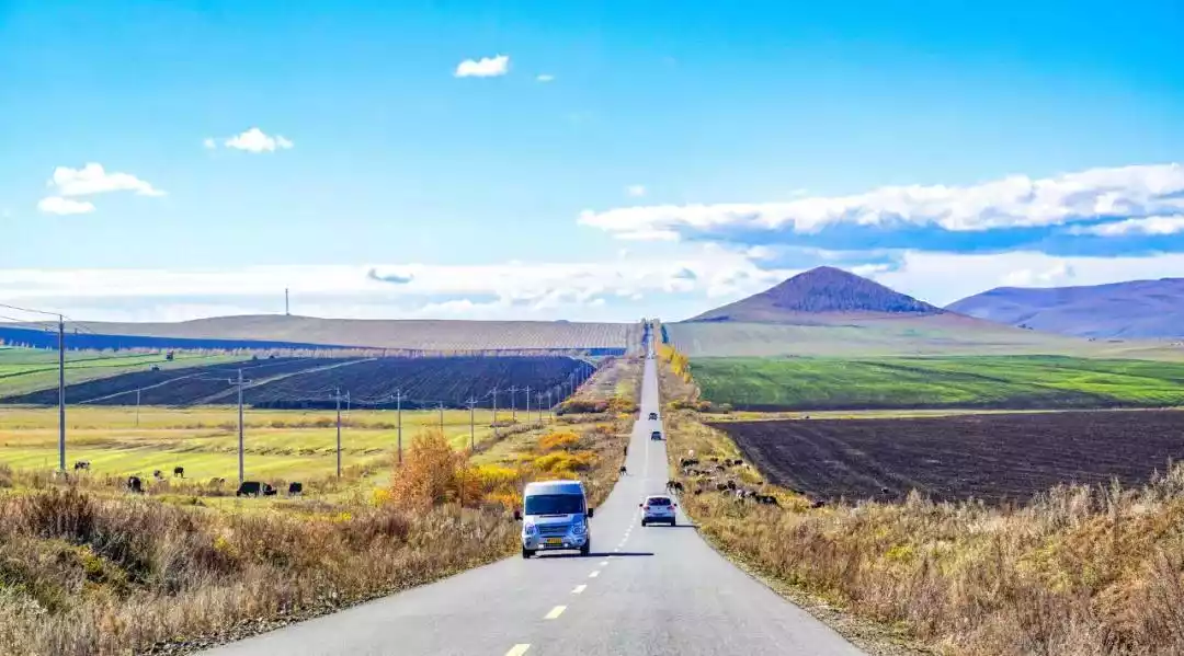 Here lies the 277-kilometer-long Sino-Russian border highway. Driving along this road, you'll see the golden Hulunbuir grassland on your right, the winding Ergun River on your left, and Russia on the other side.
