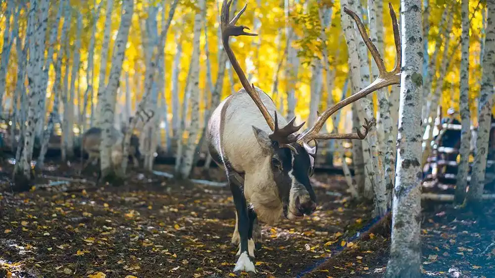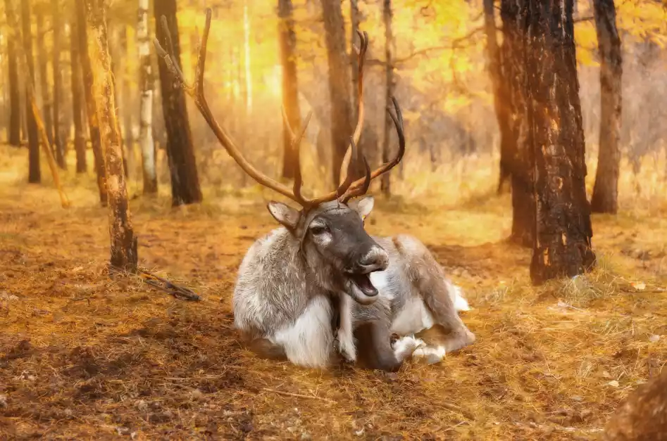 The reindeer, the "four-legged beasts", are more lazy. They are either focused on finding food or lying on the ground for a while, enjoying a moment of leisure in the forest.