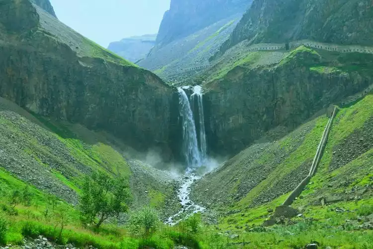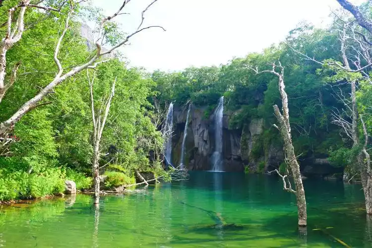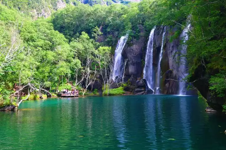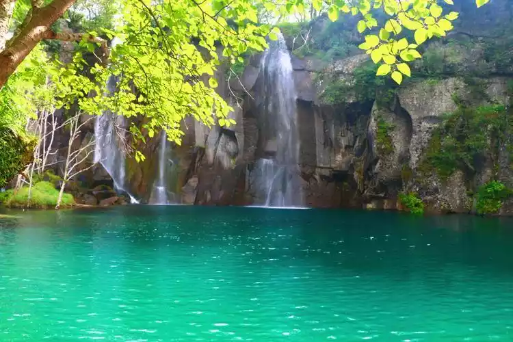 The pool water is emerald green and quiet, while the waterfall is lively and agile. The stillness and movement form a whole, just like a fairyland on earth.