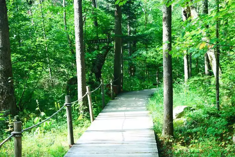 Walking on the plank road in the forest, breathing in the fresh air, the coolness will blow on your face with the breeze. Tourists coming and going, slow down their pace, take a deep breath, and the air brings us a very comfortable feeling.