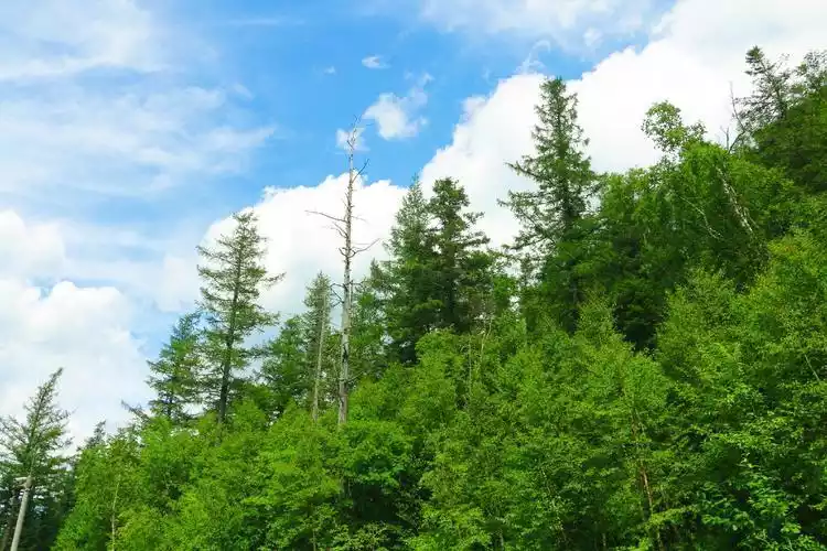 There are trees of various shapes in the forest, providing a living place for various small animals.