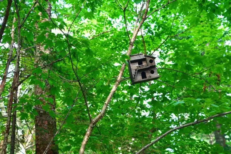 There are all kinds of artificial bird nests hanging on the trees, and occasionally you will find that there are real birds living in them.