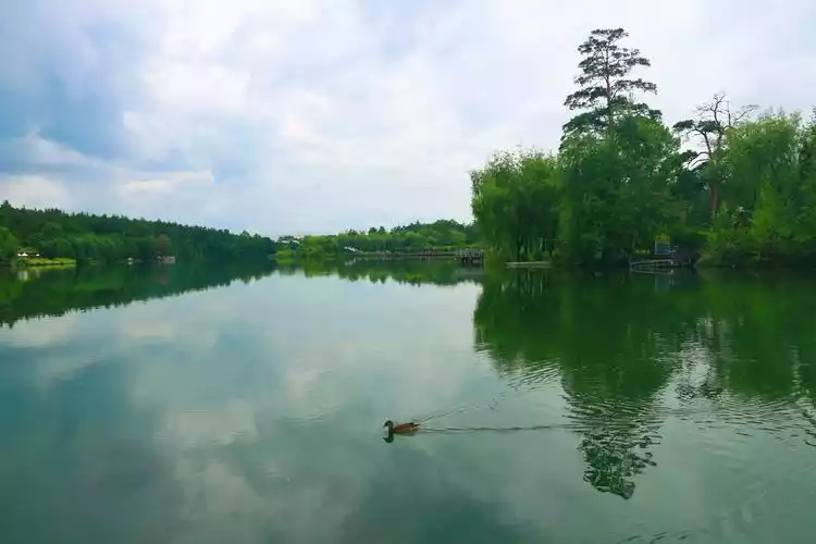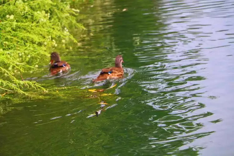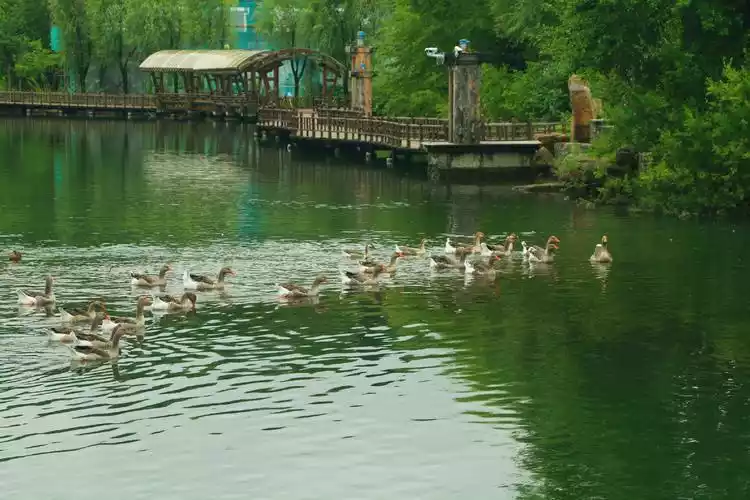 There is a large lake in Meirensong Garden, where the Chinese merganser, a first-class protected animal, swims and plays happily on the water.