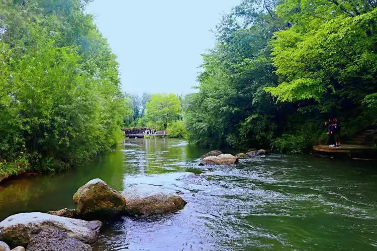 There is a river running through the park. You can stop your car and sit on the bank to stare blankly and listen to the sound of the river flowing.