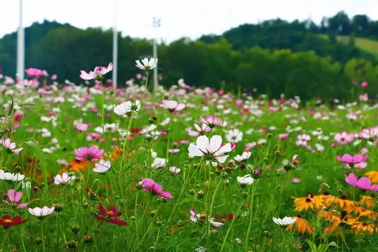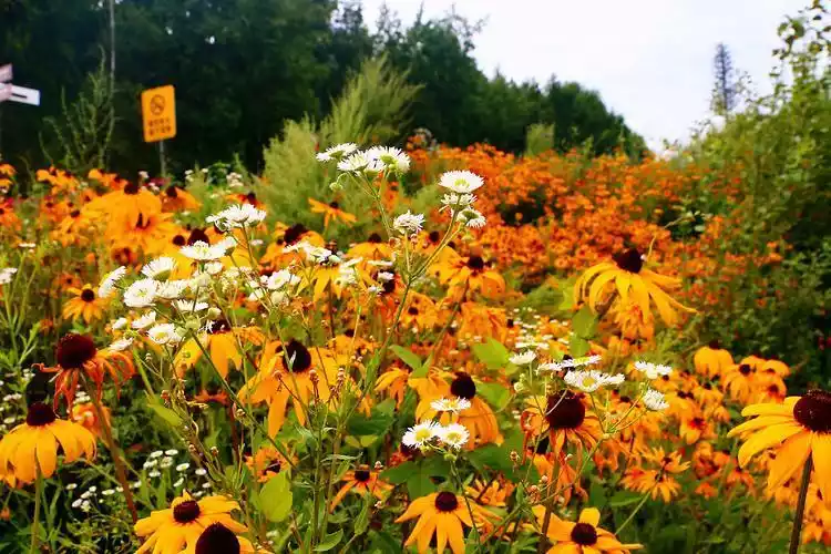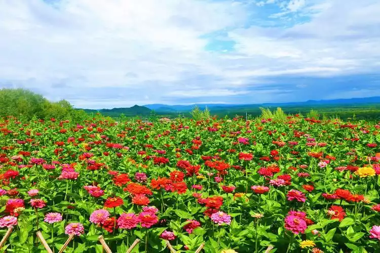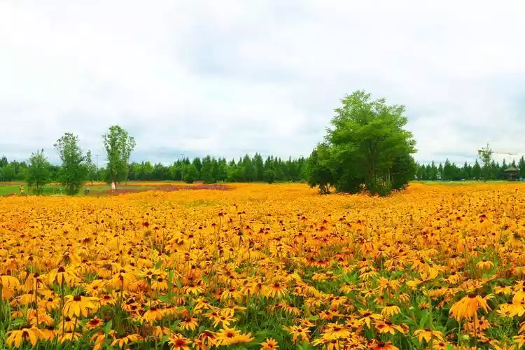 The park is a sea of colorful flowers, with more than 10 kinds of flowers planted, including sunflowers, summer dianthus, irises, cattails, cosmos, globe purple, butterfly weeds, zinnias, sulfur daisies, and asters. This is truly the largest sea of flowers I have ever seen.