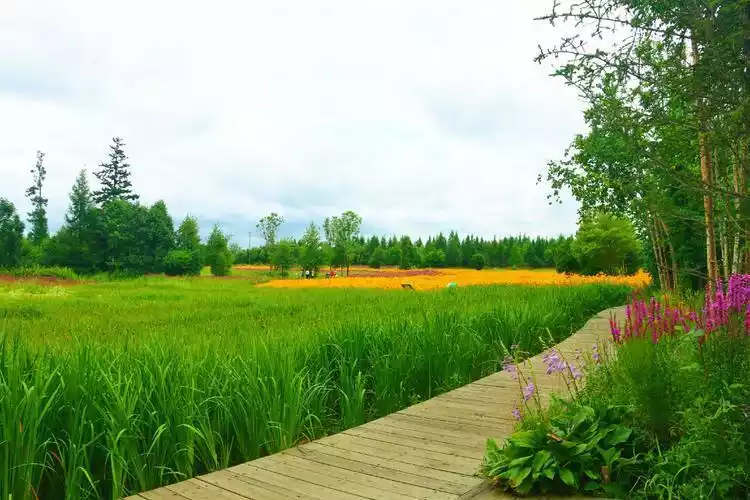 There's a wooden boardwalk through the sea of flowers, and there's a car rental station nearby. You can return your car first and then stroll through the beautiful sea of flowers. Here, you can admire the flowers, smell their fragrance, and enjoy the unique beauty and happy time that belongs to us.