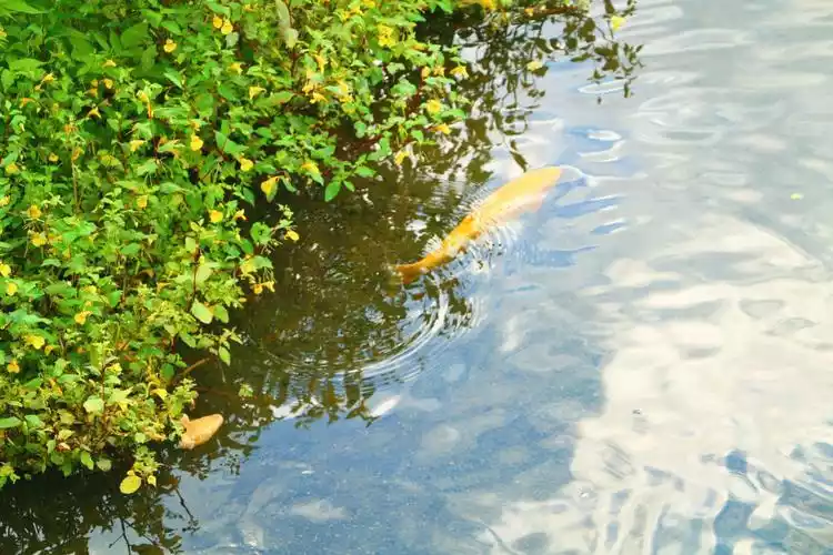 The water here is very clear and still. You can see the bottom at a glance and clearly see carp swimming at the bottom of the water.