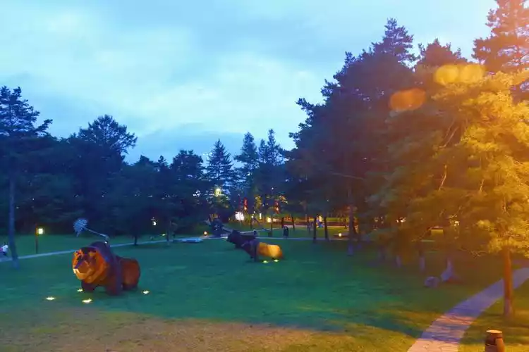 The sculptures in the park are illuminated by lights, making the artworks more vivid. Late at night, the lights in the town not only illuminate the way home, but also add to the town's unique tranquility, beauty and romance at night.