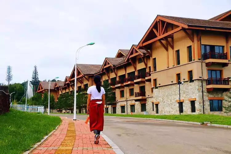 My trip to Changbai Mountain Resort was a last-minute decision, but it was surprisingly rewarding. I took a taxi from the Chixi Visitor Center to the Wanda Resort, a 40-yuan trip that took about half an hour. Upon arriving at the resort, the sun was out, the sky cleared, and the sky was white with clouds. It felt like I had stepped into a fairytale world.