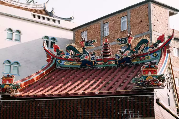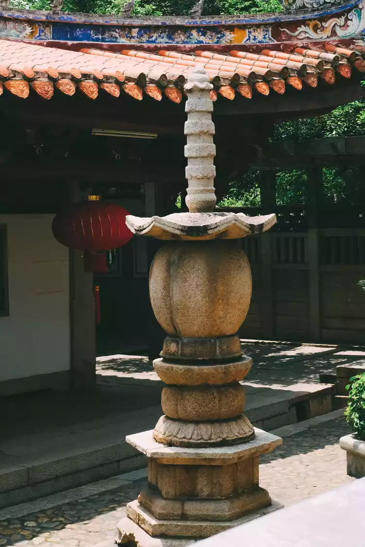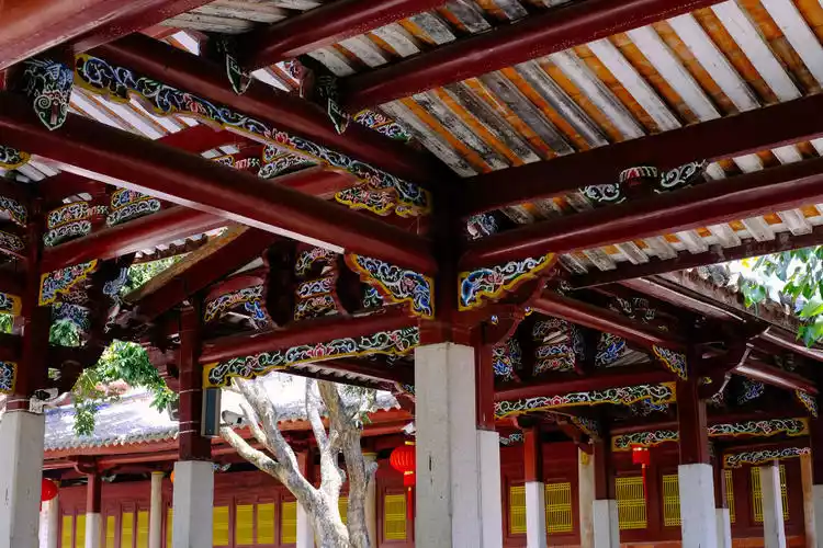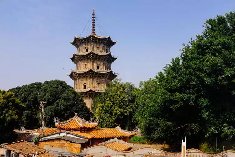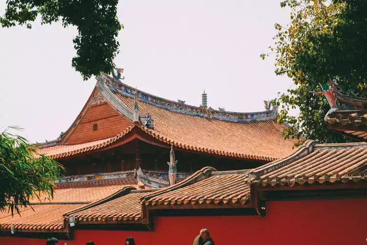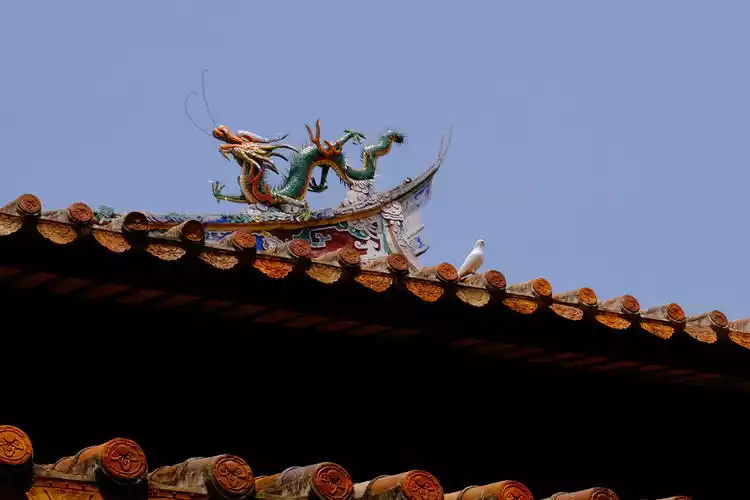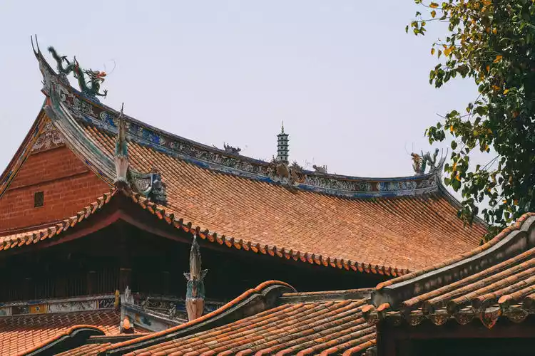The roof of Kaiyuan Temple is not as straight as in northern China. Instead, it is slightly concave in the middle, with overhanging eaves at either end, creating a fluid, streamlined shape resembling a flying swallow. The decorations on the roof are even more intricate and delicate, with dragons floating above them as independent decorative elements. The colors are also brighter. Unlike northern temples, which are dominated by yellow, blue and green also predominate here.