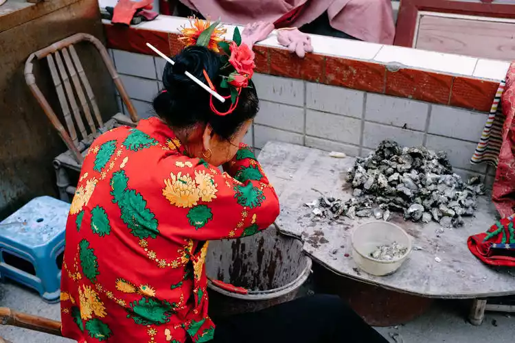 Xiepu Village is located at the mouth of the Jinjiang River, not far from the old town. A 20-minute taxi ride away, you'll be there when you smell the oyster aroma. This place is famous for its flower-wearing women. Xiepu women are one of the three major fishing women in Fujian. They all wear a bun with a "flower headband," clove earrings, and specially made long-sleeved blouses and wide-legged trousers, all with a very distinctive style.