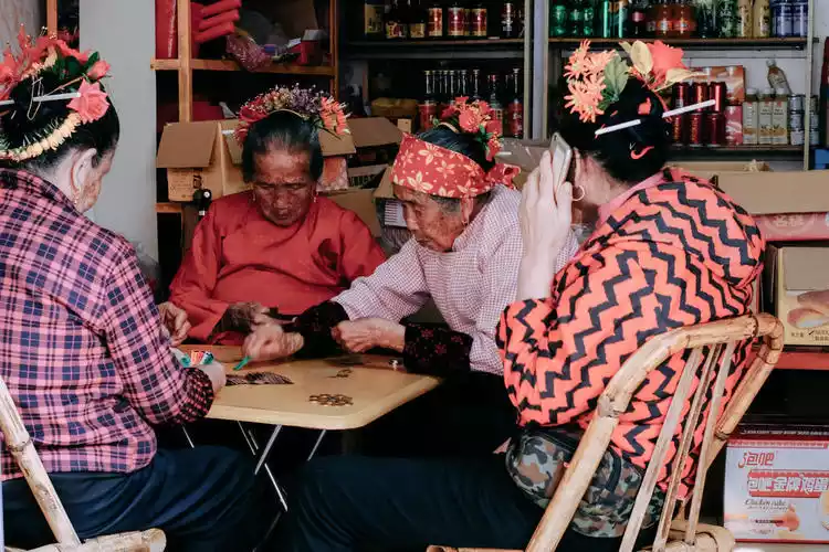 Of course, not all of them are working women. They also gather together to play cards in their spare time. Maybe the daughters-in-law are peeling oysters.