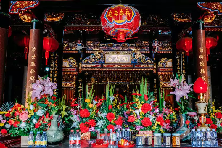 This is the first time I see floral water on the altar. Are they afraid that the mosquitoes here will disturb Mazu's meditation?
